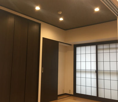 和室は照明をダウンライトに変更し調光・調色ライトで明かりを調整できる様にしました。